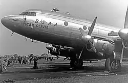 In January 1947 the airline reached an agreement with British West Indian Airways which would become an associate. BSAA would buy the majority of shares in BWIA and provide technical advice and general supervision.[5] In May 1947 the airline started a series of test flights to Bermuda using a converted Avro Lancaster which was refuelled in mid-air over the Azores to complete the flight in 20 hours.[6] On 2 August 1947, Avro Lancastrian Star Dust crashed in Argentina with the loss of all on board. In the first financial year under government control (August 1946 – March 1947) the airline made a surplus of £20,507. The two other airline corporations BOAC and BEA made a combined loss of £10,234,781.[7] On 31 March 1947 the corporation had a staff of 1,031 and had carried 5,397 passengers since August 1946.[7] For navigation purposes, the Lancastrians and Yorks were using military Gee radar over Europe, and Rebecca on the other side of the Atlantic.[8]