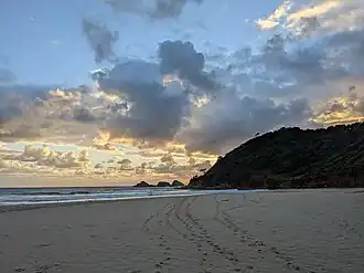 The area is noted for its Aboriginal culture, rainforest walks, whale watching and fishing from pristine beaches,[6] and it is also highly regarded as a surfing locality.[7][8] The Broken Head Holiday Park is currently administered by the indigenous Arakwal people, having been passed to their control by the New South Wales Crown Lands Department in 2009.[9]