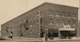 It is a three-story brick-veneered frame building, 50 feet (15 m) by 300 feet (91 m) in plan, with simple Arts and Crafts details. It was an enterprise of Albert H. Brown, a businessman. He also donated the A. H. Brown Public Library, which is also listed on the National Register.[2]