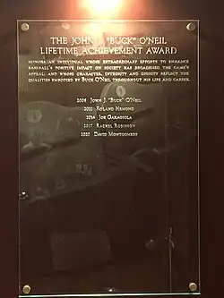 1. ^ a b c Buck O'Neil Award. National Baseball Hall of Fame and Museum official website. Retrieved 2011-10-15.