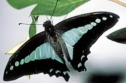 Blue triangle (Graphium choredon) Prebbleton, Canterbury 15 March 2017 Unknown/wind current