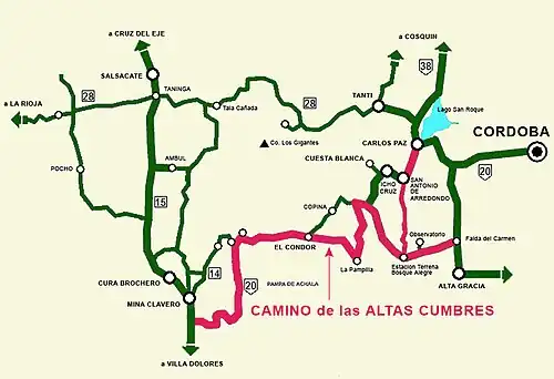 Under an agreement between the province of Cordoba and the national government, provided for the transfer of certain routes, touching the new road of approximately 126 km, be converted into a section of the National Route 20 (Argentina).