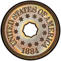 - ^ Pattern coins for the ring cent were struck in various metals, including copper, aluminum, and nickel, as well as billon.