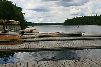 Canoe Lake is a lake located in Algonquin Provincial Park in Nipissing District, Ontario, Canada.[1] Canoe Lake is a major access point for many canoeists entering Algonquin Park as well as being home to many cottages. Important to note is that Canoe Lake is situated on the traditional territory of the Anishinaabeg, specifically the Chippewa, Ojibwa and Potawatomi peoples, under the terms of the Robinson-Huron Treaty #61 of 1850, and the Williams Treaties of 1923.[2]