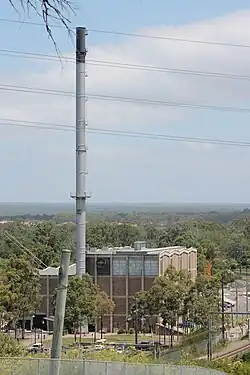 Liverpool Powerhouse was constructed in 1951, one of a number of identical power stations built to cater for growing demand in Sydney winters. In 1955, a 250-foot (76 m) high chimney was built to replace four shorter ones, which allowed the smoke to blow over residents' houses and soil their washing.[1]