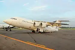 The center of gravity of this British Aerospace 146 shifted rearward when its engines were removed. As a result, it tipped back onto its rear fuselage in windy conditions.