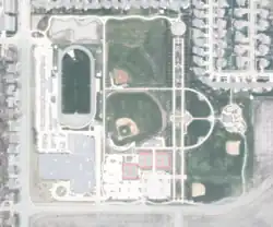 A roundabout lies on the south side of the school building. On the north side is the school parking lot and Bill Hundman Memorial Field, which contains the school football field and track.[63] CCHS uses McGraw Park facilities for baseball, softball, and tennis.[65]