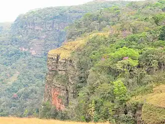 The geographical center of South America, formerly considered to be in the city of Cuiabá where it is marked by a white marble obelisk, is in fact located in the park near the town of Chapado dos Guimarães at the "Mirante de Geodésia", a scenic lookout point.[5]