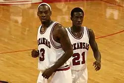 Thomas (left) and Patrick Beverley playing for Arkansas in October 2006