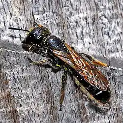 Chelostoma florisomne, the large scissor-bee, is a species of hymenopteran in the family Megachilidae.