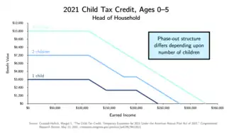- ^ a b c Crandall-Hollick, Margot L. (August 28, 2020). "The Child Tax Credit: Selected Legislative Proposals in the 116th Congress". Congressional Research Service. Archived from the original on September 23, 2021. Retrieved November 13, 2021.
