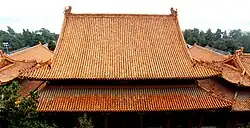 During the Song dynasty, the manufacture of glazed tiles were standardized in Li Jie's Architecture Standard.[1] In the Ming dynasty and Qing dynasty, glazed tiles became ever more popular for top-tier buildings, including palace halls in the Forbidden City, and ceremonial temples (for example the Heavenly Temple).