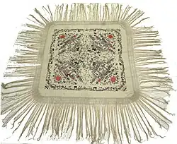 52. ^ "Silk hand embroidered shawl with long fringes – China". The Zay Initiative. Retrieved 12 September 2022.
