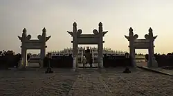 The Circular Mound Altar (Chinese: 圜丘坛; Chinese: Huánqiū Tán) is an outdoor empty circular platform on three levels of marble stones, located in Beijing, China. It is part of the Temple of Heaven.