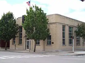 Citizens National Bank is a historic bank building located at Springville, Erie County, New York. It was built in 1939, and is a two-story, five-bay, square brick building with Moderne style design elements. The interior features a mural titled "Credit Man's Confidence in Man" and painted by noted artist Louis Grell. The building housed a bank until 1968 when it was sold to the Village of Springville.[2] The building was listed on the National Register of Historic Places in 1996.[1] There is also a fallout shelter inside with five inch concrete walls and capabilities to hold up to 400 people for 6 months