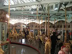 The carousel, originally mule-driven, opened in 1897, and was updated to a mechanical carousel in 1906. The miniature train opened in 1898 and the original golf course was built in 1902. A racetrack opened February 11, 1905, but closed only 3 years later in 1908. In the first two decades of the 20th century, numerous improvements were undertaken by the City Park Improvement Association. The Peristyle was constructed in 1907 and the Isaac Delgado Museum of Art, later renamed the New Orleans Museum of Art, opened in 1911. Two years later, in 1913, the Casino building opened offering refreshments. The Casino building is currently occupied by Café du Monde. The Popp Bandstand was constructed in 1917 and dedicated on July 4. The Irby swimming pool was built in 1924. City Park's governing board also accomplished a number of large land acquisitions, such that the park assumed its current boundaries.[11]