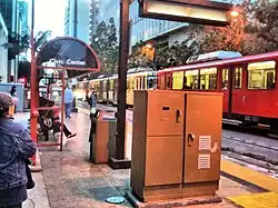 Civic Center station is a station of the Blue, Orange, and Silver Lines on the San Diego Trolley. It is located in the downtown Core of the city and is surrounded by a variety of important office buildings.