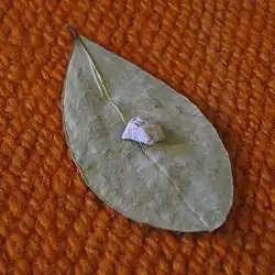 Fresh samples of the dried leaves, uncurled, are a deep green colour on the upper surface, and a grey-green on the lower surface, and have a strong tea-like aroma. When chewed, they produce a pleasurable numbness in the mouth, and have a pleasant, pungent taste. They are traditionally chewed with slaked lime or some other reagent such as bicarbonate of soda to increase the release of the active ingredients from the leaf. Older species have a camphoraceous smell and a brownish color, and lack the pungent taste.[11][69] See also Erythroxylum coca, and Erythroxylum novogranatense spp.