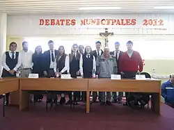 In October 2012, a group of eleventh and twelfth grade Preciosa Sangre students, led by history teacher Erna Pereira Arenas, organized a debate (Spanish: debate municipal) between candidates for mayor of Pichilemu, which was held on the 23 of that month, just five days before the election took place. Candidates Mario Moraga Cáceres (independent), Washington Araneda Carrasco (Progressist Party), Cristián Tamayo Latapiat (independent), and Carlos Acuña Arévalo (National Renewal) participated. According to Jorge Nasser Guerra from Radio Entreolas, and an article published on Diario VI Región, Roberto Córdova Carreño, who was eventually elected, rejected to participate in the debate because he "would not attend that kind of events", while Iván Cabrera Martínez "never responded the students' invitation". Some of the issues discussed in the debate were "municipal and higher education, health, urbanization, municipal corruption," amid other topics.[83] The debate was broadcast live on local radio stations Entreolas and Isla FM. The debate was praised by local online newspaper Pichilemu News for being "the first ever debate held in Pichilemu" and "whose planification took care of every detail".[84][85]