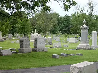 The Columbia Cemetery in Columbia, Missouri has been in use as a cemetery since 1820.[2] The cemetery historically contains, White, African-American, and Jewish (Beth Olem Cemetery, Beth Shalom Cemetery) sections. Located in the cemetery are a vernacular stone receiving vault (1887), and a Romanesque Revival style mausoleum (1911).[3]