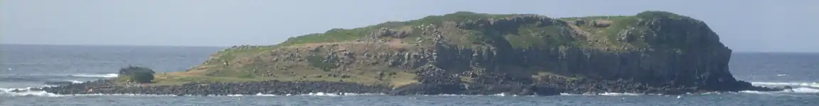 Cook Island is formed of “rocks from the Lismore Basalt Group, formed by lava flows from the Mount Warning Shield Volcano approximately 20 million years ago.”[2]: 2 The Island is a “protrusion of eroded basalt” of a maximum height of 24.8 metres (81 ft) above sea level and topped with a plateau. The western side of the island has a “gentle” slope while the remaining sides are “sheer cliffs” dropping to “low-lying rock shelves”. The top of the island and its western side are overlaid by a “shallow cover of topsoil.” A “semi-permanent freshwater basin” is located in the island's northern side.[2]: 2