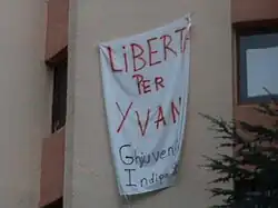 Banner at the Pasquale Paoli University erected by supporters of Corsican independence, calling for the release of Yvan Colonna