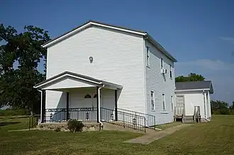 The County Line School and Lodge is a historic multifunction community building in rural western Fulton County, Arkansas. It stands at the junction of County Roads 115 and 236, just east of the county line with Baxter County, west of the small community of Gepp. It is a vernacular two story wood-frame structure with a gable roof and a cast stone foundation. The ground floor houses a school room, and the upper floor was used for meetings of the County Line Masonic Lodge. It was built c. 1879, and was one of the first community buildings to be built in the area. Intended to actually stand astride the county line (since it served communities in both counties), a later survey determined it lies a few feet within Fulton County. The building was used as a school until 1948, when the local school systems were consolidated.[2]