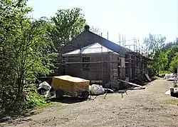 The OS map of 1893 shows the goods shed with one other siding and a siding running parallel to the main line, a weighing machine and several small buildings associated with the goods yards.[5] By 1967 the platforms had been removed, the passing loop remained and the station building was still intact.