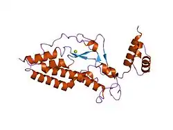 19. ^ PDB: 1V0D​; Woo EJ, Kim YG, Kim MS, Han WD, Shin S, Robinson H, et al. (May 2004). "Structural mechanism for inactivation and activation of CAD/DFF40 in the apoptotic pathway". Molecular Cell. 14 (4): 531–9. doi:10.1016/S1097-2765(04)00258-8. PMID 15149602.