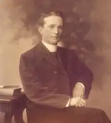 Father Simon Hegarty CM arrived at St Joseph's Parish Church in Malvern in 1895 and was instrumental in negotiating the appointment of the De La Salle Brothers to Malvern to open a school for boys. His term as Parish Priest ended in 1914 when he volunteered as War Chaplain. He later returned to his homeland, Ireland, where he died on Christmas Eve 1935.