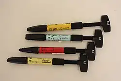 - ^ Chesterman J, Jowett A, Gallacher A, Nixon P (2017). "Bulk-fill resin-based composite restorative materials: a review". BDJ. 222 (5): 337–344. doi:10.1038/sj.bdj.2017.214. PMID 28281590. S2CID 4581987.