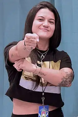 Priscilla Zuniga[4] (born July 14, 1991), better known by her ring name Diamante, is an American professional wrestler signed to All Elite Wrestling (AEW) and its sister promotion, Ring of Honor (ROH).[5] She is also known for her time with Impact Wrestling and on the independent circuit.[6]
