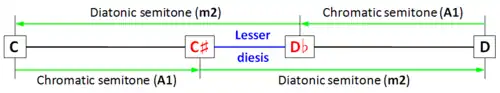 2. ^ Haluska, Jan (2003). The Mathematical Theory of Tone Systems, p. xxvi. ISBN 0-8247-4714-3. Minor diesis, diminished second.