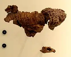 Dissorophus (DI-soh-ROH-fus) (meaning "double roof" for two layers of armor) is an extinct genus of temnospondyl amphibian that lived during the Early Permian Period about 273 million years ago. Its fossils have been found in Texas[1] and in Oklahoma[2] in North America. Its heavy armor and robust build indicate Dissorophus was active on land, similar to other members of the clade Dissorophidae that are known from the Late Carboniferous to the Early Permian periods. Dissorphus is distinguished by its small body size, disproportionately large head and short trunk.