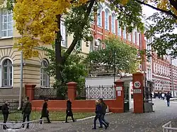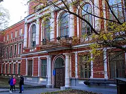 The Dnipro University of Technology is a primarily campus based university. Much of the university is located on a central site in the city of Dnipro, close to the municipal historical museum and scientific library. The main building (1st Corpus), built in 1899 is a protected monument of architecture; it is a large structure with a neo-classical front elevation which serves as the main entrance to the university's territory. Over the years the campus has developed with the addition of numerous new buildings. One of the first of these was the 2nd Corpus which was built specifically for the Mining School (originally as the School of Chemistry),[13] whilst soon after the No. 1 municipal school for girls on Politseyska Street, was acquired for use as the institution's 3rd Corpus.[14] Later, in the 1960s and 80s the university's fourth to tenth corpuses were built. There is no particularly dominant architectural style present amongst the university's buildings other than the Russian interpretation of 19th century neo-classicalism which defines the pre-Soviet era structures present on the territory of the university. The university's 7th Corpus, a large 14 story constructivist building built in the 1970s, was built on a site just slightly to the east of the crossing of Olesya Honchara Street and Shevchenko Street (formerly Politseyska), thus dividing Shevchenko Street into two sections and enclosing the section from O. Hochara Street to Gagarin Street within the grounds of the polytechnic. The university's sport's facilities are located in and around the 6th corpus, which is also located on the grounds of the university.