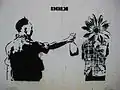The work "Che" from 2007 shows a cigar-smoking Che Guevara proudly pointing at his own t-shirt with the iconic portrait from 1960 taken by Alberto Korda of himself. Dolk's stencil is distinguished by many as the ultimate copy of this portrait, that after Che Guevara's death was pirate-copied, creating an enormous turnover. The stencil has been sold as the prints "Che" and "Che XL". The well-known street art website "Pictures on Walls" sold Dolk's "Che" as postcards in 2006.