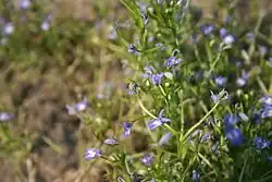 Downingia is a genus of 13 annual plants native to western North America and Chile. Commonly known as calico flowers, they are notable for forming mass displays of small but colorful blooms around vernal pools. A number are uncommon endemics in California.