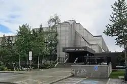 Downtown Whitehorse is the commercial centre of the city. The Yukon Legislative Building is located in this area and was built in 1976.[2] It is generally considered to extend from the narrows between the clay cliffs and the Yukon River just south of Taylor Street, north to the east–west leg of the Second Avenue extension, and from the Yukon River to the base of the clay cliffs. Business activities are mainly confined to 1st, 2nd, 3rd and 4th avenues, as well as adjacent sections of the cross streets, and mainly north of Hanson Street (third street south of Main). The remainder of the downtown is primarily residential.