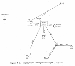 This photo shows Jim Lovell training for Apollo 13. He is currently deploying a mock-up of the Central Station. The Station was spring-loaded. After releasing Boyd bolts, the top of the Station would spring up, deploying it. Note the various locations on top of it which held some of the experiments before deployment. They were also held down with Boyd bolts that were released with a UHT.[4]