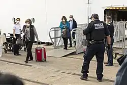 Passengers began disembarking from the ship in San Diego on 30 March 2020 after her last sailing.[15] In April, allegations surfaced that the ship had failed to protect passengers from known cases of COVID-19.[15] Passengers and crew had tested positive despite Celebrity's original public denials of any cases on board.[16] One man died in the United States four days after returning home in the United States and his wife also tested positive.[15] Another passenger, an 83-year-old man, was reported dead in Queensland, Australia, on 18 April.[17]