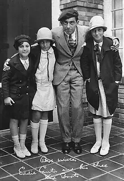 Cantor and three of his daughters strike a pose in 1926 to promote his first film, Kid Boots, and children's shoes.