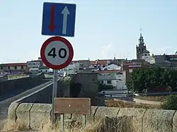 Initiated towards 1380 or 1383 under the oversight of Archbishop of Toledo Pedro Tenorio, the bridge over the Tagus was already built by 1388.[4][5] Housing developed in the bridge's vicinity.[6] The archbishop granted rights for the collection of the tithe and the bridge toll to the newly-born town, that otherwise also prospered thanks to the construction of gristmills.[7] Over the course of the 15th century and up until the 1492 expulsion, Villafranca de la Puente del Arzobispo (later El Puente del Arzobispo) hosted a small Jewish community.[8] Some of the forcibly exiled Jews (who had moved to Portugal) soon returned as conversos.[9]