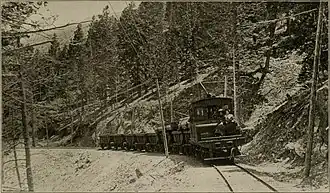 After seven different managers had tried unsuccessfully to operate the property at a profit, the company was sold to George W. Young of New York on 18 March 1905, for $1 million. He replaced the expensive electric locomotives with a Shay geared steam locomotive. A 3 miles (4.8 km) aerial tramway replaced the 7+12 miles (12.1 km) Shay railroad in 1917/18 at a cost of $125,000.[3]