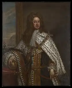 Following the English Revolution of 1688, William of Orange, a Dutch, ascended to the throne of England, replacing James II, which was a fatal blow for Sir Josiah Child who had bet on the wrong side.[74] The past wars between the Dutch and English merchants in Madras were now settled, and both started to form alliances through marriage.[75][74] From then on, the directors' letters to Yale changed in tone.[74] Sir Langhorne started complimenting him on his private trade in diamonds, as they now saw it as a way to expand the company to new markets without having to bear the risks themselves.[74] Yale tried to build routes at Mindanao, the second largest island of the Philippines, getting from them Clove and Ironwood.[74] He was then put on a secret committee with Sir John Child, governor of Bombay, and Nathaniel Higginson, mayor of Madras, to plan the establishment of a new fort near the South Seas, to engage in trade with China.[74] On 17 March 1689, Yale received the arrival of Commander Job Charnock, with his staff and four companies of soldiers.[76] He arrived from a failed mission that consisted of blocking and seizing the ships of Mughal Aurangzeb, who had attacked the company's ships in the Bay of Bengal, and taken control of Chittagong during the Anglo-Mughal War.[76]