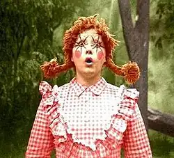 A rag doll with a rough, antagonistic personality and an independent, anarchist behaviour, Emília is Lobato's most popular creation alongside Jeca Tatu. According to studies and analyses of Lobato's work, she is his personification in the stories and, through the character, he expressed his own ideas.[2] Even though Lobato has stated that Emília is "sometimes so independent that neither I, nor her father, succeed in controlling her". Since 1951, Emília has been adapted to stage plays, theatrical films and television series, being portrayed by several actresses (eleven altogether) since its creation.[3]