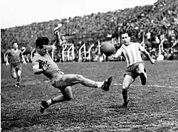 Garcìa about to take a corner kick playing for Racing, in 1940