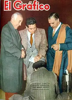 García (left) with Adolfo Pedernera and José Manuel Moreno on the cover of El Gráfico, 1957