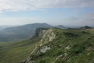 An approximately 2800 m long wall protected the north side, most easily accessible from the valley and from the branch of the Belice river (ancient Crimisio); on the south, east and west sides, on the other hand, the rocky walls offer a natural defense. At the junction of the two valleys are gates to the hill of Rocca. The North West gate was accessed by a road, still intact, which winds along the slopes of Cozzo Petraro.