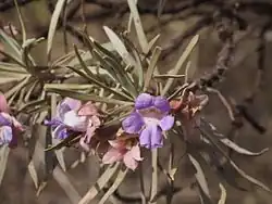 Eremophila phyllopda subsp. obliqua leaves and flowers