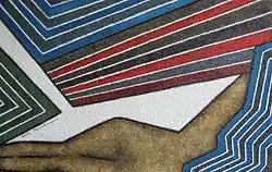 • "Mixes figuration and abstraction with a poetic and philosophical key. Important are the framing, the intersections, and the balance of the surfaces. Introduces extraneous substances (ashes, sand, grit, etc.) which give an aspect of strangeness and ruggedness as if he leaves traces of the past." (Arto)[13]